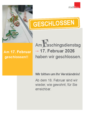 Am 17. Februar sind wir nicht erreichbar - die Stadtbau ist geschlossen!